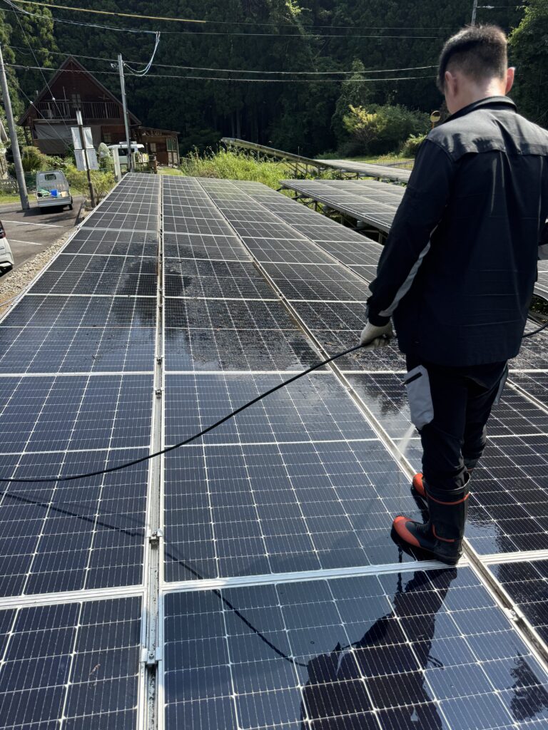 先日は暑い中、名張市のソーラーパネルの洗浄に伺いました。